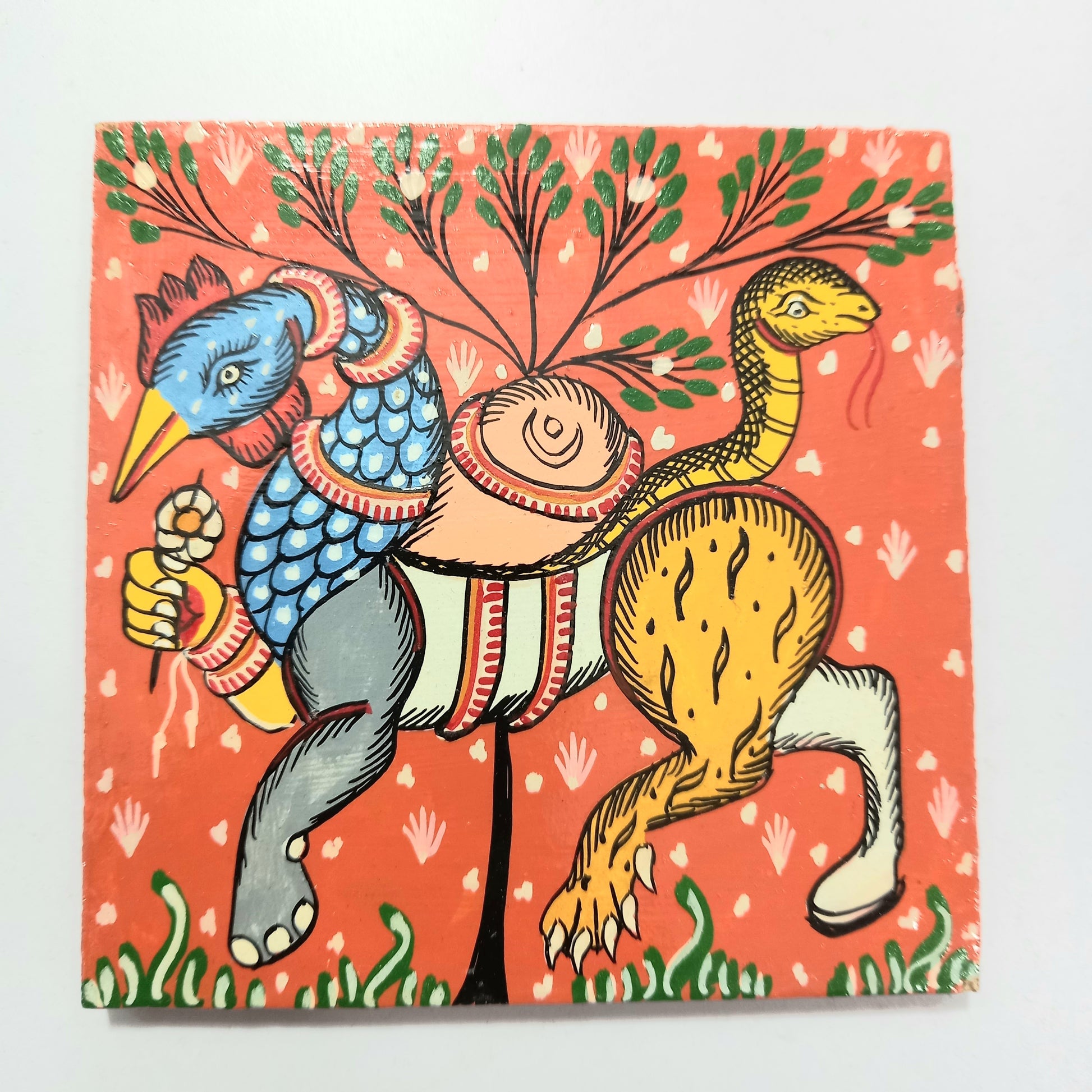 Odisha Handicraft Patachitra Painting Nabagunjara Design Coaster from raghurajpur