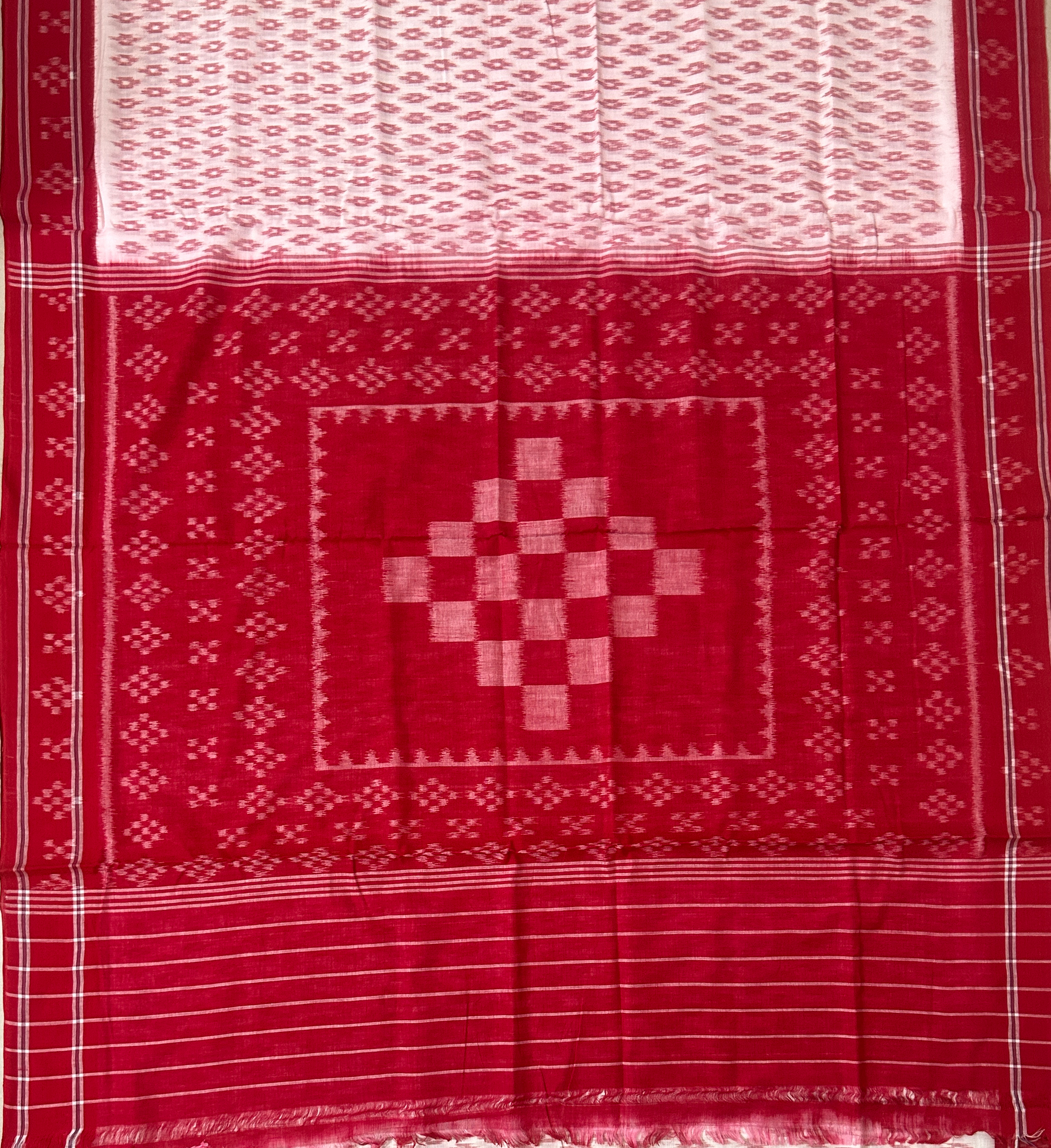 Odisha Handloom White With Red Pasapalli design ikat casual wear cotton sambalpuri saree